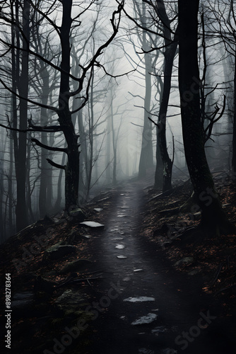 Fototapeta premium Mysterious Eerie Forest under the Menacing Overcast Sky - A Scene from the...