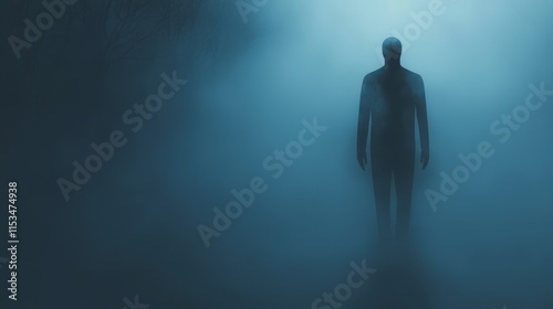 © นางสาววัญญา วิเศษสิง, Obraz premium Mysterious Figure in Foggy Night Landscape