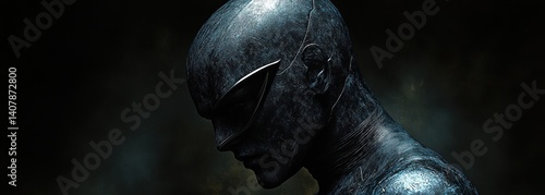 © tiger, Naklejka premium Mysterious Figure in Helmet Chiaroscuro Close-Up Noir Art Portrait Toy Model Character Collection