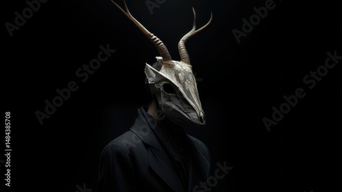 © วิทวัส วงษ์หาจักร์, Naklejka premium Mysterious figure with animal mask and dark attire.