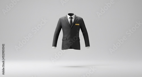© Muchlis Nugroho, Obraz premium Mysterious Floating Suit: A 3D Render of a Business Suit with a Gold Name Tag