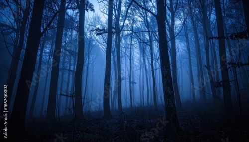 © mario, Obraz premium Mysterious Foggy Forest at Dusk