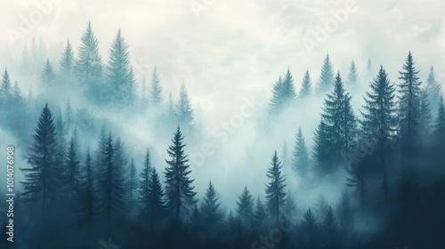 Obraz premium Mysterious foggy forest landscape with majestic pine trees