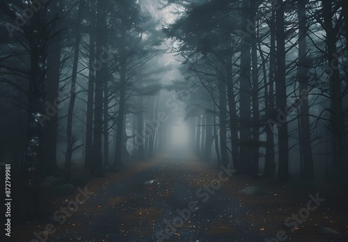 Obraz premium Mysterious Foggy Forest Path