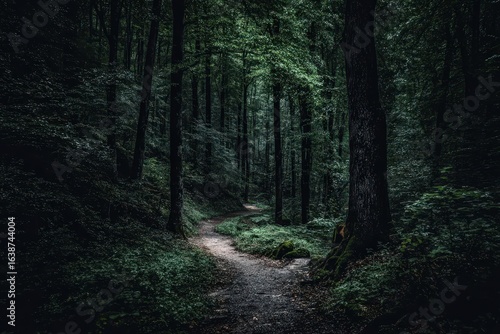 © Kos, Obraz premium Mysterious Forest Path At Night