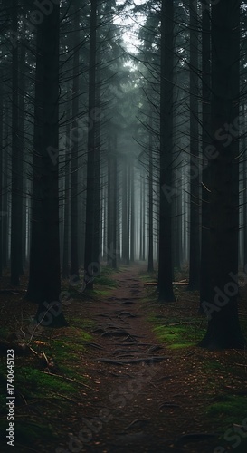 Obraz premium Mysterious Forest Path in Fog.
