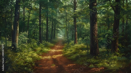 © MD, Obraz premium Mysterious Forest Path with Lush Greenery