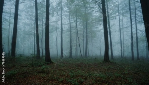 Obraz premium Mysterious forest with a moonlit path fog and a Halloween backdrop hint