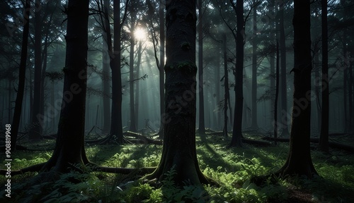 Naklejka premium Mysterious Forest with Sunlight