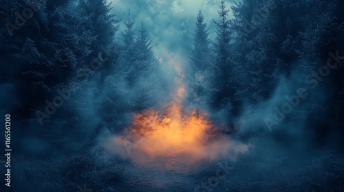 © JuanB, Fototapeta premium Mysterious glowing light in a dark forest