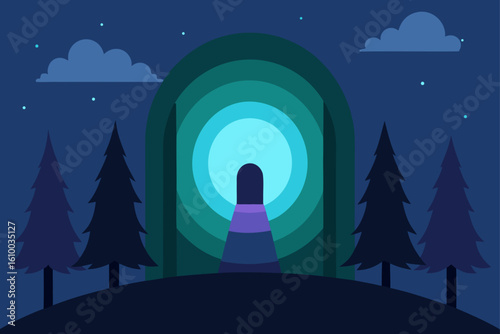 Fototapeta premium Mysterious glowing portal in a dark forest at night