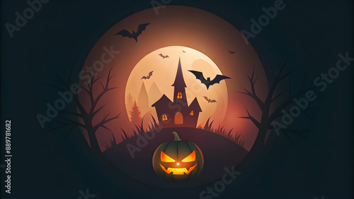 Fototapeta premium Mysterious Halloween night with a menacing pumpkin in a foggy graveyard