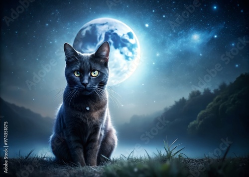 © Sirinporn, Obraz premium Mysterious Midnight Meow