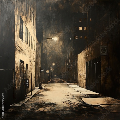 © Infinity, Obraz premium Mysterious Night Alley: Urban Exploration in Sepia Tones