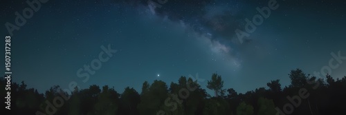 Fototapeta premium Mysterious Night Nature Scene with Moonlight, Mist, Stars, Forest Atmosphere, Cinematic Mood, Realistic Landscape Art
