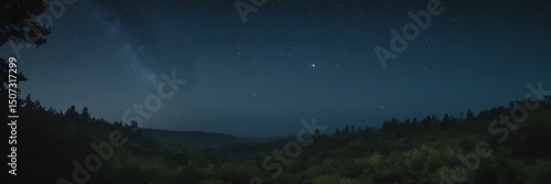 Fototapeta premium Mysterious Night Nature Scene with Moonlight, Mist, Stars, Forest Atmosphere,...