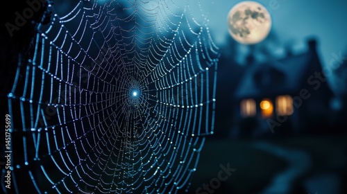 © Chotijah, Naklejka premium Mysterious nocturnal spider web glistening with dew drops.