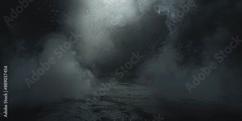 Fototapeta premium Mysterious Panoramic Fog: Abstract Dark Room Concrete Floor for Product...