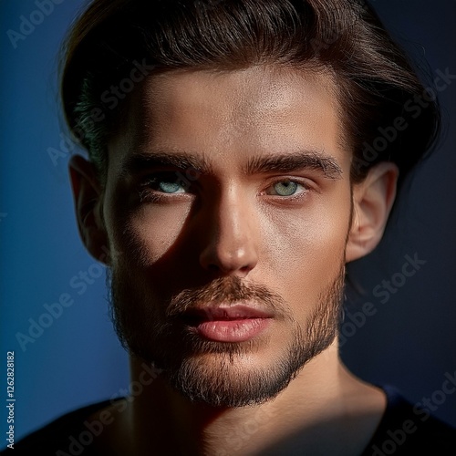 © Photo by mQ, Obraz premium Mysterious portrait. Delicate shadows and reflections emphasize an intriguing personality. Sensual and enigmatic