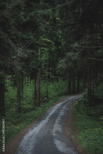 © Lucie, Fototapeta premium mysterious road in the dark woods