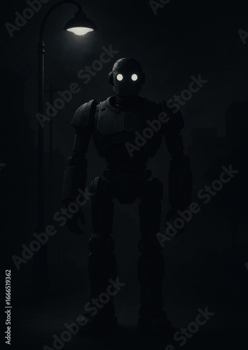 © Rawpixel.com, Fototapeta premium Mysterious robot under streetlight.