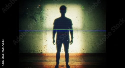 © Lena, Obraz premium Mysterious Shadowy Silhouette Against Grungy Urban Wall Background