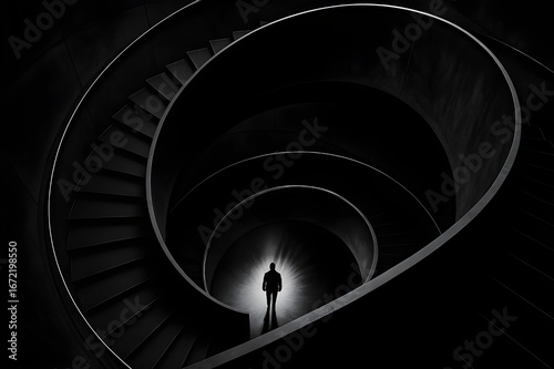 © ranga, Obraz premium Mysterious Silhouette on Spiral Staircase in Black and White