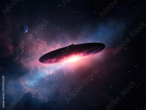 Obraz premium Mysterious Spaceship in Colorful Cosmic Nebula with Stars