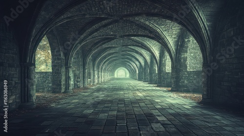 Obraz premium Mysterious stone archway tunnel leading to light.