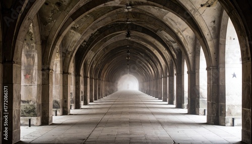 © Ilham, Fototapeta premium Mysterious Stone Tunnel with Fog and Haze