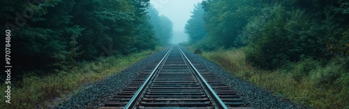 Fototapeta premium Mysterious Train Tracks Through Misty Forest