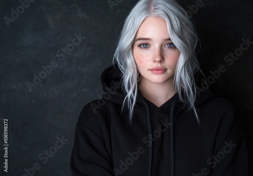 © Balaraw, Fototapeta premium Mysterious young woman with striking silver hair