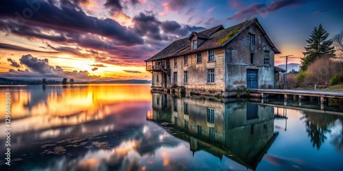 Fototapeta premium Mysterious Zug Lake Urban Exploration: Abandoned Building Reflections