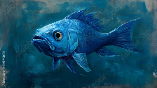 Fototapeta premium Mystic Blue Fish: A captivating artistic depiction of a vibrant blue fish swimming gracefully in the depths, rendered with a painterly style and evoking a sense of aquatic serenity.