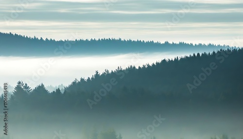 © tingting, Fototapeta premium Mystic morning forest in a veil of fog