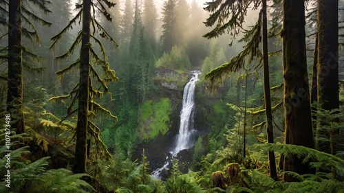 Obraz premium Mystic Morning Mist in a Serene Pine Forest Landscape V1