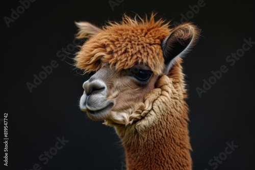 Obraz premium Mystic portrait of Alpaca, copy space on right side,