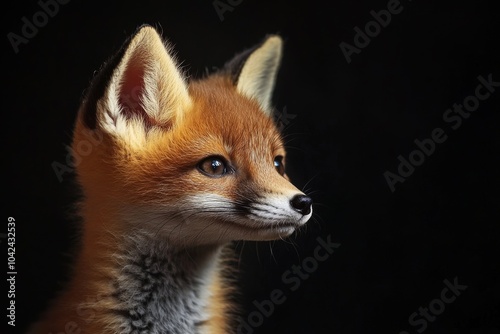 Naklejka premium Mystic portrait of baby Swift Fox in studio, copy space on right side,...