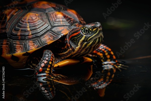 © Eyestetix Studio, Obraz premium Mystic portrait of Eastern Box Turtle, full body view, isolated on black background