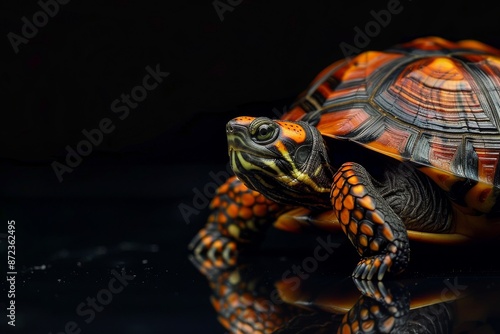 © Eyestetix Studio, Obraz premium Mystic portrait of Eastern Box Turtle, full body view, isolated on black background