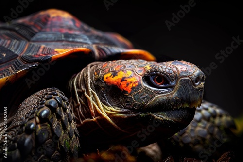 © Eyestetix Studio, Obraz premium Mystic portrait of Galapagos Tortoise on leave, full body view, isolated on black background