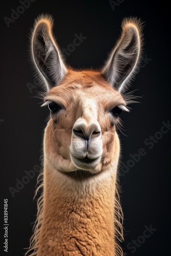 © Eyestetix Studio, Fototapeta premium Mystic portrait of Llama, copy space on right side, Anger, Menacing, Headshot, Close-up View Isolated on black background