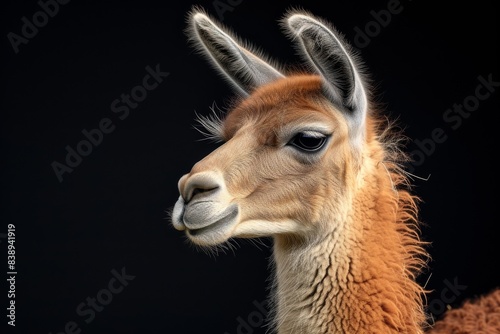 Obraz premium Mystic portrait of Llama, copy space on right side, Anger, Menacing, Headshot, Close-up View Isolated on black background