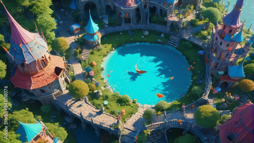 © 4K_Heaven, Fototapeta premium Mystical Aerial Realm: Breathtaking Panorama of Fantasy Terrain, Ethereal Beauty, Generative AI