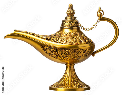 © Md shain, Fototapeta premium Mystical Arabian Genie Lamp with Golden Shine Transparent Background.
