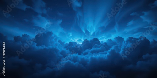 © Sanook, Fototapeta premium Mystical Azure Cloud Formation Serene Night Scene with a Deep Blue and Cloud Texture Background