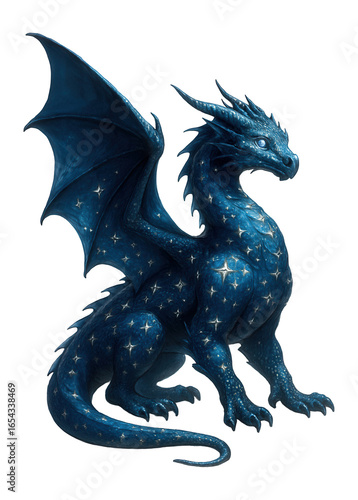 © OMD, Naklejka premium Mystical blue dragon adorned with stars.