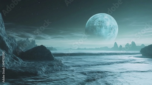 Fototapeta premium Mystical Blue Moon Over a Distant Planet
