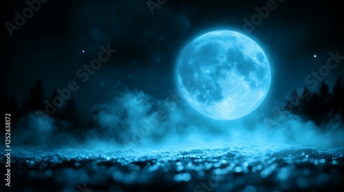 © barber, Fototapeta premium Mystical blue moon over foggy forest.