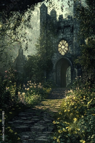 © Media Srock, Obraz premium Mystical castle hidden in the enchanted woodland